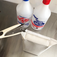 | @アルコールではさみや、パッケージも消毒する | Aお客様に提供する時は手袋も着用。 |