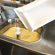 今回は、日世メーカーのソフトクリームミックスを実際に使用します。 |